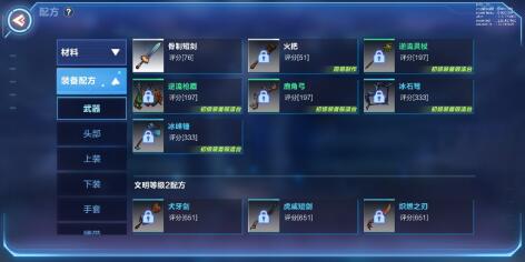 不同的建筑可以制造不同种类的东西,分别为装备,建筑,化学品,食品。配方的获取需要靠探索世界的进度,商店购买,等级解锁,主线剧情解锁。