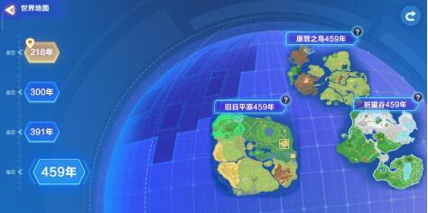 看看我们的世界地图,世界地图分4个年代,不同年代生物也不同,生物也会进化,也会出现新的生物,各个年代都有不同的物资,不同的食物 不同年代中解锁的岛屿也不同,颇有些沧海桑田的意思。