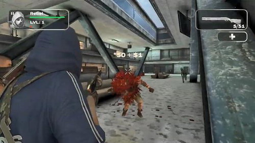 2、当你的附近出现各种僵尸时,尽情的扫射,快速击杀,不要让它们近你的身;