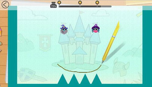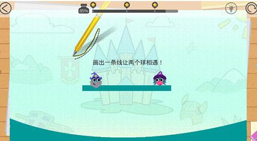 第二关:这关也比较好理解。在下面画上一条弧形使其落在上面相互碰撞。