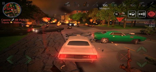 3、游戏主要是采用了俯视角的模式为主,你可以轻松自由的在洛杉矶街头开始自己的枪战大片。