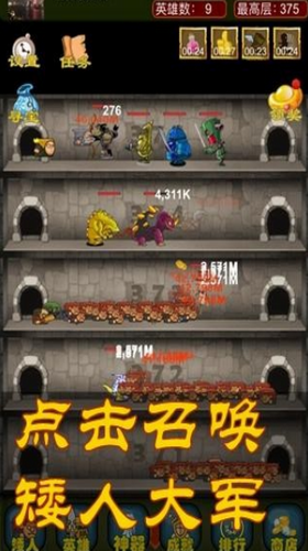 矮人爬爬塔手机版是款经典魔幻冒险RPG手游,经典复古的游戏画风,可爱Q萌的人物形象,经典欧式冒险闯关游戏玩法,游戏中玩家可以召唤英雄来一起冒险,收集各式各样的宝藏,玩家还可以采用自动挂机升级英雄方式,为玩家带来很大的便利性,喜欢的玩家快来下载吧!
