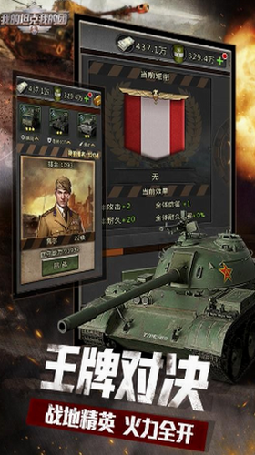 我的坦克我的团最新版是款最近重磅推出的大型坦克竞技手游,游戏采用写实、逼真的画面,游戏中玩家可以选择加入或创建自己的军团,和军团成员携手对抗其他军团;相互争夺资源、领土,以及世界霸主地位将成为玩家游戏的主要目的,游戏高度强调真实性与策略性,在游戏中,玩家可以通过收集养成坦克来提升自己的战力,游戏中收录了自二战到现代的百余辆坦克和战车。另外玩家还可以培养车长、研发坦克配件、晋升指挥官军衔,感兴趣的玩家快来下载体验吧!