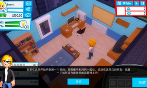 1、在游戏里你扮演一个梦想成为youtube网红的大学生,通过玩游戏,录制,解说,剪辑,发布视频来赚取人气和粉丝。
