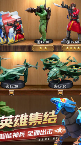 多款珍藏版英雄军种帅气来袭,技能装备自由搭配,玩家可全方位打造自己的专属玩具兵团。