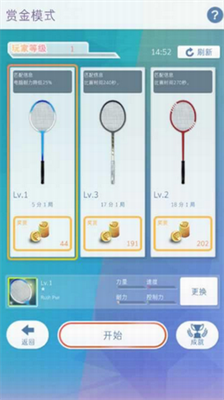4、不同风格类型的球拍,入手你的专属装备,完成各种极具挑战的任务。
