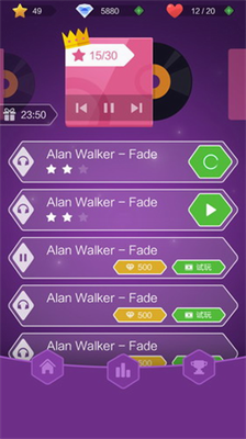 1、超炫的音乐试听效果,独特刺激的游戏玩法;