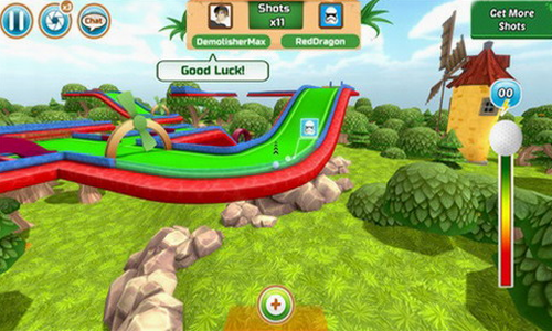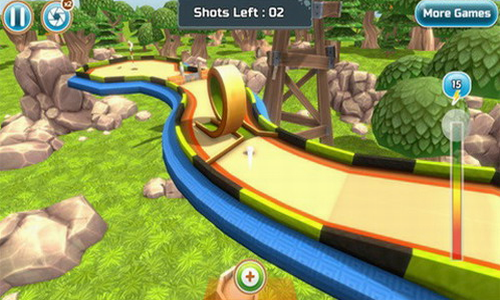 1、玩自己的球,让高尔夫穿越长长的轨道,顺利的抵达终点,取得胜利;