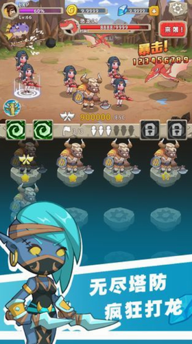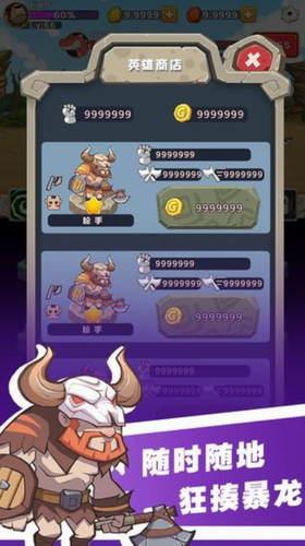 3、升级好英雄,部署好阵型,让你的勇士们自己前进吧,他们会为你一直战斗到底,你只需要经常回来查看他们献给你的宝藏就行了。