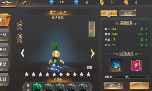 5、宠物升阶可以提升宠物攻击力,所有外形提供的攻击力加成累加。