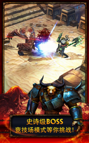 永恒战士2无限金币版是一款非常棒的RPG游戏,是由Glu Mobile公司打造。主角是一位外形狂野内心闷骚的肌肉型长发大叔,他所使用的武器也完美地诠释了这个奔放的造型:全部是近身重型武器,包括打击系的斧和斩系的镰刀、大剑等,人物释放攻击时候动作幅度大,打击范围广,因此打起怪来的感觉也非常地爽快。虚拟摇杆+攻击/技能键也是比较容易上手的传统模式,而且那个巨大的虚 拟摇杆可以随着玩家手指出现在屏幕左侧区域的任何位置,几乎没有按错的可能,从这一点上说本作的操作手感确实很好,这也是Glu擅长的了。