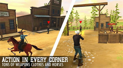 1、最精彩的枪战对抗在这里开始了,化身为牛仔,体验放荡不羁的西部生活;
