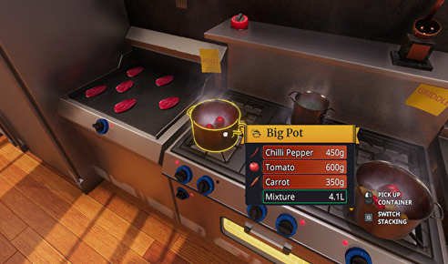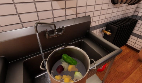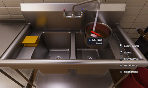 3.菜肴制作,根据客人的订单进行制作,有详细的制作顺序说明,第一次可能会觉得复杂,但多重复几次基本上就默认能记住大概的流程了。从按需拿取对应重量的食材到各食材的精心加工,再到最后的装盘点缀,其制作的过程可谓十分真实,几乎都应用了真实的物理原理。