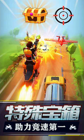 1、暴力飞车 无限金币钻石版不同的赛道,利用弯道技术来建立优势,或者用武器来击败其他摩托选手
