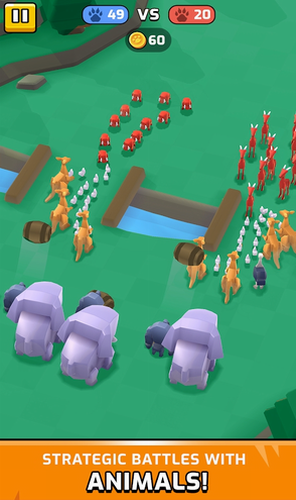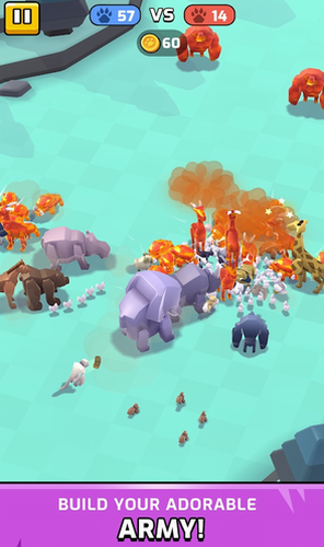 建立和升级您的军队,以进行具有挑战性的战斗,动物战争无限金币版是一款非常不错的卡通风休闲策略游戏,玩家在游戏中要自己打造一支由各种动物组成的队伍,然后去和其他玩家进行PK,看看谁的搭配更合理。,游戏加入了狮子、老虎、鹿、袋鼠等数十种不同的动物,不同的动物战斗力是不同的,玩家需要按照一定的策略来招募动物战斗,看着两群动物一起混战。游戏采用了低多边形卡通造型动物模型,收集您的动物战士参加城市动物战斗,我们要熟悉各种动物的战斗技能,让他们在不断的战斗过程中提升等级,帮助我们轻松在战斗中获取更多的胜利