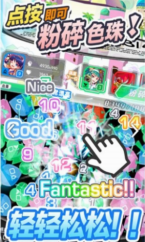 《粉碎狂热》中只要透过点按的简单操作就可以体验到最高级的「爽快感」。只要1次点按就可以连锁粉碎色珠。超华丽效果的粉碎技能、一发逆转的狂热模式等,多样化的系统让你感受更多的「爽快感」!