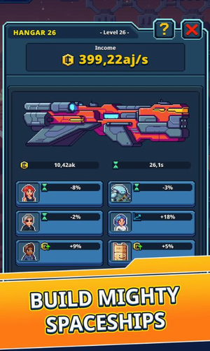 建设出属于自己的太空空间站,前往位置的宇宙中去探索,闲置空间大亨无限金币版是一款放置类休闲模拟游戏,前往未知太空空间站,建立自己的宇宙基地,开始你的星际旅行。非常有意思的设定,在高度科技化的未来,这一想法成为了现实,玩家可以在游戏中一点点探索未知的宇宙,并在那里建立各种工业化基地,在游戏中玩家需要自己打理自己的太空船和机库,为了赚取金币,你需要研究空间更大的船舶,作为一个空间站的经营者,你要为来往的旅客提供方便,当赚取到一定的金币之后你就可以扩大自己的太空站,游戏的玩法很简单