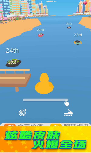 在这里需要考验玩家的驾驶技术,竞速锦标赛无限金币版是一款竞速类手机游戏,游戏采用简约的画面设计,在游戏中玩家将驾驶着可爱的小黄鸭进行竞速,展现自己超高的驾驶技术,打败对手,获得更高的排名和奖励,游戏中拥有精美的彩绘主题元素设计,更有各种游戏道具等你来收集,戏采用精美的彩绘主题元素设计,全新的休闲街机游戏挑战,轻松减压的游戏氛围,游戏的挑战和关卡任务可玩度都非常的高,玩家将驾驶自由的快艇,在海面上展开挑战,玩家需要灵活的躲避各种障碍和陷阱,并收集更多的金币,挑战坡道将获取更高的分数,简单的规则和操作环节,主要考验玩家的灵活度和掌控能力反应