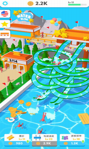 不断的升级你的游乐园设施,以及建造更多的游乐项目。魔力滑水转圈圈最新版是一款非常好玩的休闲类手游,魔力滑水转圈圈iOS手游你要建造属于你自己的水上游乐园,所以你要不断的升级你的游乐园设施,以及建造更多的游乐项目,游戏以色彩小人为人物原型非常可爱搞笑,作为一名水上乐园的老板你需要好好打造水上乐园中的各种设施和设备,让顾客有许许多多的放松选择,吸引更多的顾客,将水上乐园做大做强!