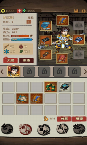 2、拥有超多武功秘籍和武器可以选择,等级达到40级还能免费开宝箱
