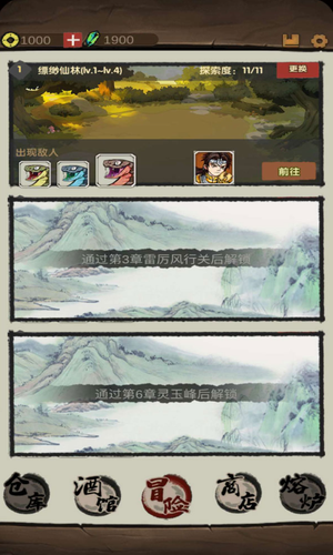 1、在里面你将要扮演一名侠客,不停的闯关,完成任务可获取到丰厚的奖励