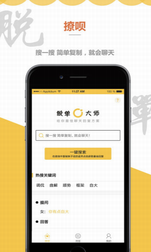 失恋挽回、关系维系、约会技巧,让你秒变情圣。脱单大师app最新版是一款恋爱模拟类手机游戏,为你轻松解决各种恋爱烦恼,让万千少年少女沉迷的脱单软件,都8102了听说你还单身!?女神的亲密问候竟不知道如何作答,频频被发好人卡的你现在还好吗?母胎solo25年拍拍胸口告诉自己要坚强,只要拥有这款神器便可以让你轻松解决单身烦恼,在这里,用户可以轻松在线进行恋爱上的相关资讯,真正帮助解决国内青年男女们的恋爱脱单困难问题,让用户精通恋爱思维技巧,让脱单指日可待。感兴趣的用户还在等什么,抓紧下载体验吧!