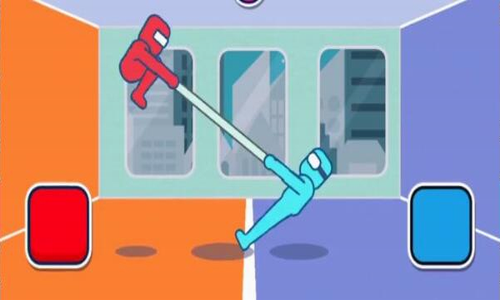 2、红蓝小人拉桌子拔河,场面很是激烈啊
