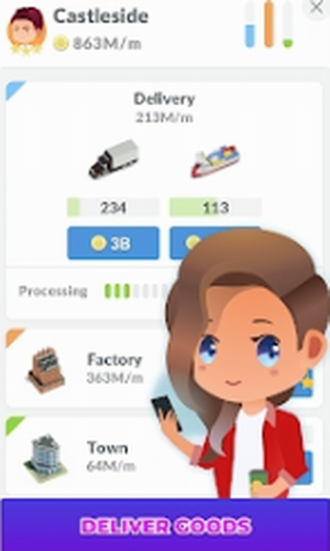 1、放置运输城市破解版中玩家寻找将货物运送到城镇的最棒的方法,分配卡车,火车和货运船