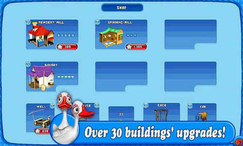 2、游戏中包括鸡,牛,猪,鸵鸟等4种全新的动物,可生产出16项全新的产品,美味的牛排,可口的蛋糕,以及古朴的羽毛衣饰等。12类建筑物,3种速度提升,4种攻击等级的熊敌人。以及17项秘密物品,19个奖章值得你去发现和收集