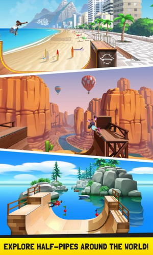 玩家在游戏中将会成为一名滑板好爱者,滑板运动员无限金币版是一款充满趣味挑战性的滑板休闲游戏,玩家在游戏中将会充分领略到滑板的魅力,各种极限操作带给你的快感会让你大呼过瘾,180度旋转,空中折叠,360度空中大翻转等一系列极限操作。还有许许多多炫酷的滑板技能,精致布局的场景,挑战成功后会有丰厚的游戏奖励,超级细腻的画风为玩家在滑板运动员破解版中进行准备,让玩家可以更好的体验到最精彩的游戏内容,享受不一样的精彩游戏