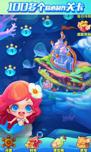 1、游戏界面如同海底一样,能和美人鱼一起游伴。