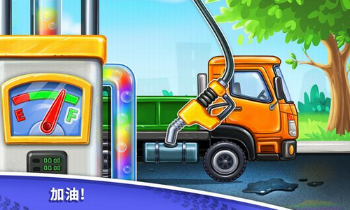 3、然后在加油站为小孩子装满加油站的卡车