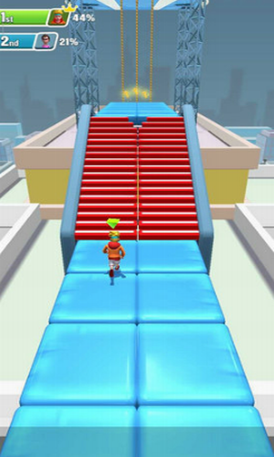 1、控制着小人在场景中不断的冲刺,你要避开一些陷阱机关的同时,也要比其他的人群先到达终点才行