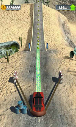 4、你能通过弹弓进行蓄力让自己的赛车拥有动力来向前驾驶,你必须能通过更多的赛道