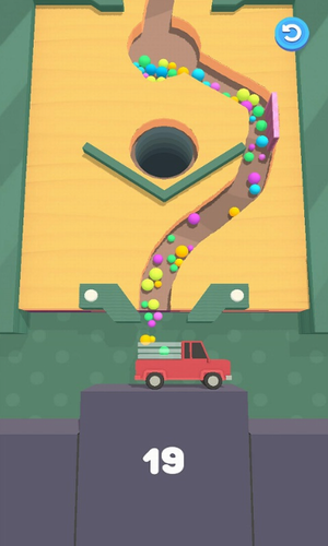 1、根据你挖出的隧道,球球会自动跟着隧道掉下来,直至落入货车的车厢当中