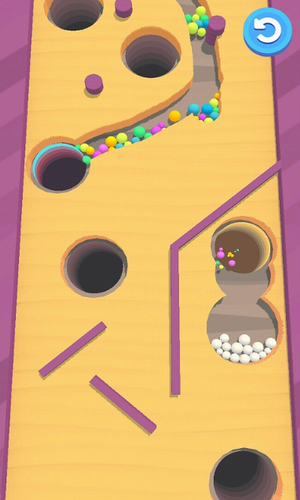 3、游戏的画风非常简洁,游戏的操作玩法也很简单,发挥自己的脑洞,让所有小球都装进车里