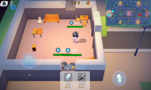 4、精致卡通界面3D完美的游戏景观,地图奔跑与寻找的激烈逃脱玩法让你充满紧张刺激感