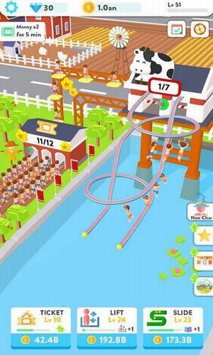 3、每次升级游乐场都可以增加你的收入,你还可以切换不同的场景,在不同的地区建造你的游乐场