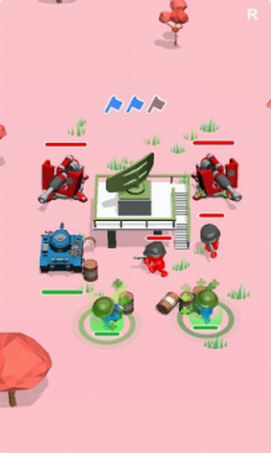 2、游戏的画面简约清新,玩家在游戏里扮演指挥官,指挥自己的军队向敌人发起进攻