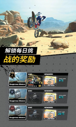 游戏操作性很强,没有太大的难度,越野摩托车无限金币版是一款非常有特色的摩托竞速类游戏,游戏真实的赛道设定和强烈的颠簸感让游戏很容易把玩家们带入那个紧张刺激的比赛环境中,丰富的细节渲染做的也十分到位,,在这里不在局限于城市中的障碍攀爬和赛道里的小坡小路。这个游戏中拥有非常陡峭的坡道和巨大的障碍,在前进个途中也会有些陷阱机关对你造成一些阻碍,玩家在这款游戏中将可以体验到驾驶着摩托在赛道上疾驰,飞扬的泥土,跳来跳去的机车,让人充分的感受到了比赛现场的激情