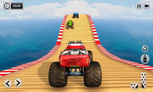 4、GT巨型坡道模式,将带你到高空疯狂的怪物卡车特技表演,你会得到超级快的怪物卡车不可能轨道的巨大兴奋