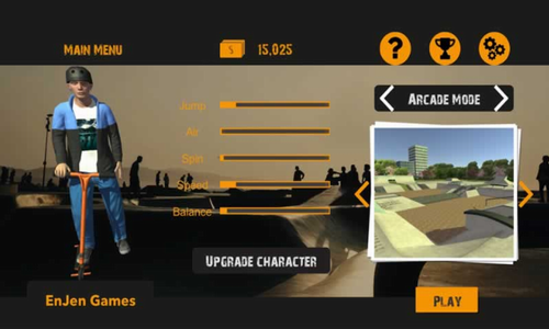 在这里展现滑板特技,完成游戏任务,滑板车3D2中文版是一款趣味性十足的休闲娱乐游戏,3D的视觉效果,精致的卡通人物设置,通过合理的操控好主人公完成各种滑板车的挑战,灵活的展示各种技能,尽情的释放对滑板车的激情。在这款游戏中玩家们将驾驶滑板车在自由的场地驰骋,重力感应控制方向,简单的一键操作就可以完成各种特技动作。可以选择你所喜欢的模式与关卡进行挑战,而且在游戏中还可以体验不同的环境,方式,是一款可玩性较高的游戏