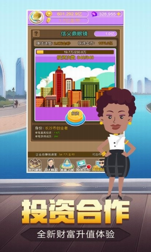 3、简单放置操控轻松经营养成,完成更多产业的涉及,进行合理的投资
