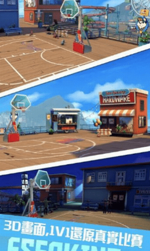 3、全3D打造的真实游戏画面,还原一个真实的比赛场地,一比一的黄金比例,体验街头乐趣。