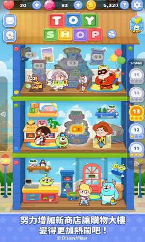 让你的玩具商店更热闹,皮克斯塔无限金币版是一款Q版卡通可爱风消除闯关游戏。游戏玩法包括了三消,经营等元素,让你在这里通过三肖的方式来收集各种各样的商品,建造属于你的购物大楼,然后和可爱的迪士尼角色们一起购物,玩法轻松有趣,破解了大量移动步数,游戏中玩家经营者一家玩具商店,在这里你需要用玩消消乐的方式去收集那些顾客需要的玩家,然后努力赚钱,增加购物大楼,让玩家们一起来与这些卡通明星们共同进行游戏