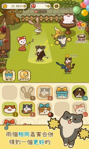 2、还有更多可以合成解锁的稀有小动物,它们的加入将会让你的派对更加的欢乐
