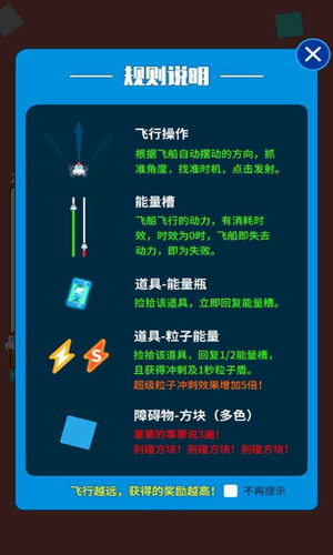 合理的利用不同道具可以加快通关速度,别碰方块无限道具版是一款充满趣味性的休闲玩法手游,充满趣味性的玩法非常有意思,你可以控制飞船尽可能的闯过更多关卡,你能够驾驶着自己的宇宙飞船在浩瀚的太空中探索,并躲避更多的障碍物,挑战一切的不可能。游戏方法十分简单,随着飞船的方向单点屏幕,躲避宇宙方块。坚持到最后,你就胜利了,这里有很多玩家创造的积累,你如果实力够强的话,可以去挑战,如果登顶排行榜的话,还有丰富的奖励等你拿