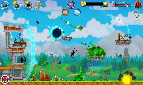 3、你需要合理的分配资源并且帮助火柴人修建各种各样防御工事,从敌人的攻城武器捍卫自己的城堡