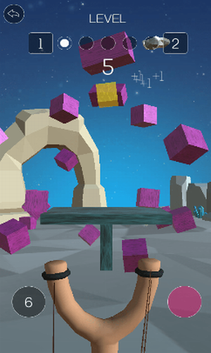 2、游戏玩法非常新颖有趣,通过弹弓来进行射击,粉粹你面前的建筑物,看着方块被射击的四溅非常的爽酷。