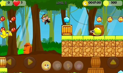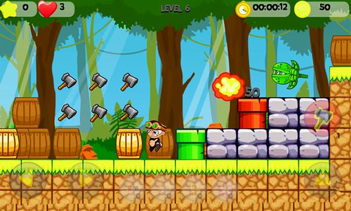 对于不同的困难,奖励是不同的,丛林世界冒险无限道具版是一款复古玩法的横版动作冒险游戏,有点像冒险岛和马里奥的结合体,你可以扔出斧头攻击敌人,也可以躲避他们,大家一定都玩过超级马里奥,这款游戏的玩法跟超级马里奥一样,玩家通过跳跃顶撞带有问号的砖块得分,有的砖块会掉出诸如蘑菇,五角星之类的特殊道具,捡到了就会增强能力,游戏中有恐龙蝙蝠等各种怪物会阻碍玩家的前进道路,快来打倒他们冲向终点吧